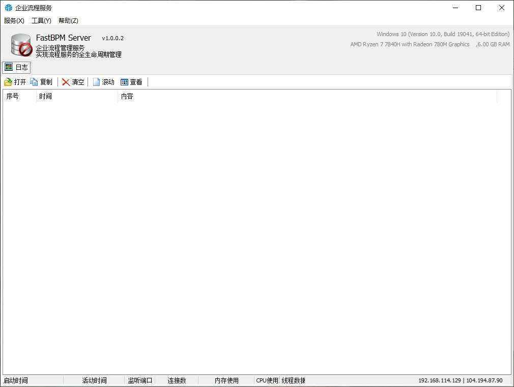 使用滑鼠左鍵雙擊FastBPM_Server程式的快捷方式。打開FastBPM_Server的運行畫面。