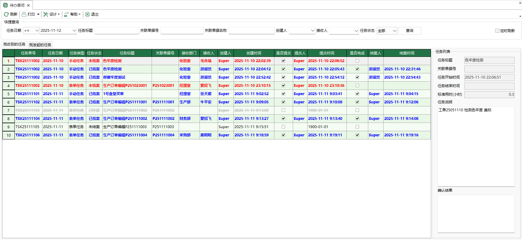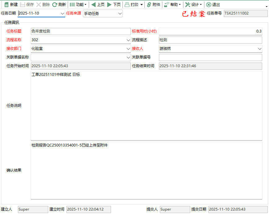 如果該任務是由某張單據(如採購單、生產單)觸發的,系統會顯示對應的單據編號。