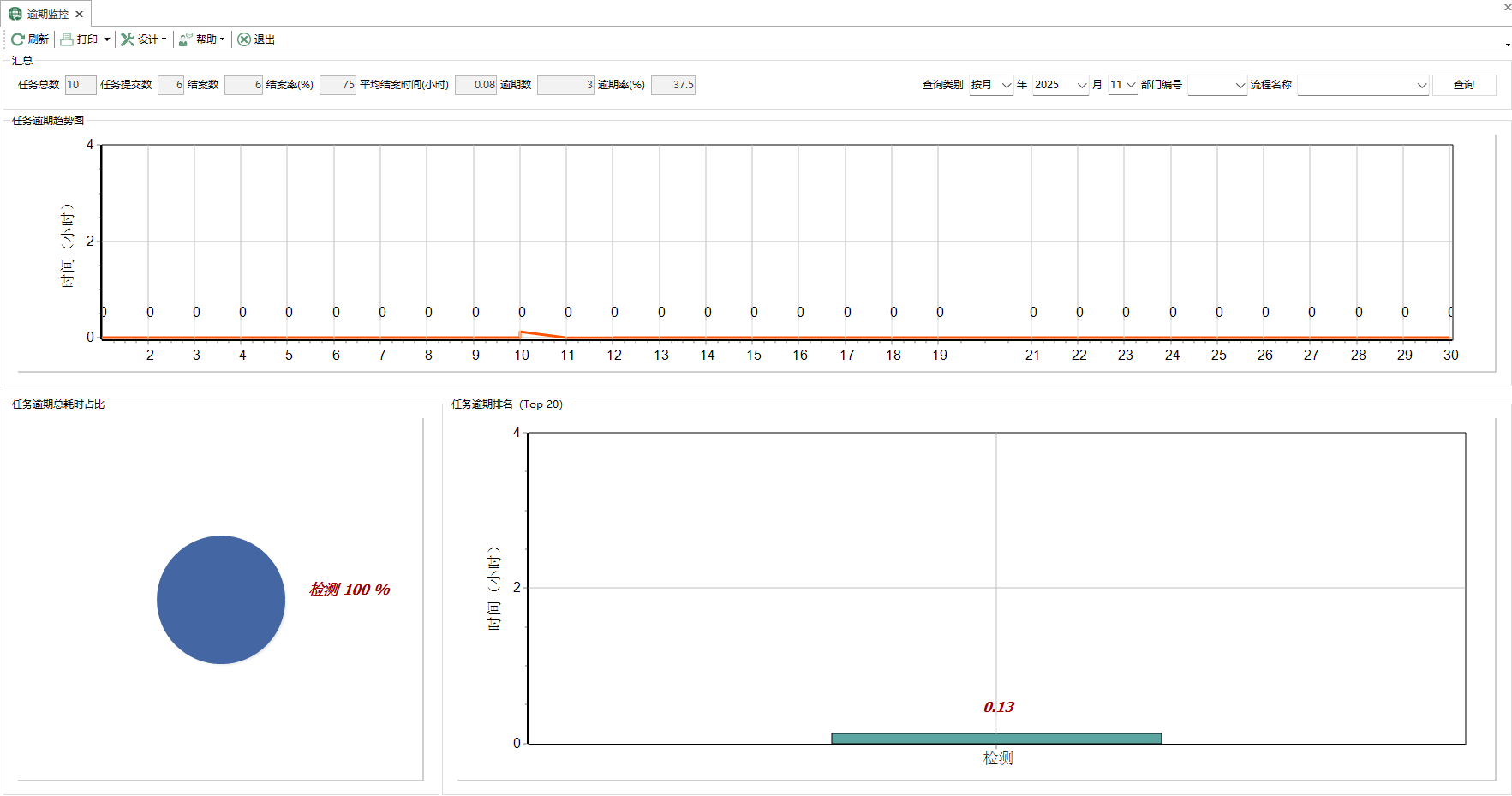 - 逾期數:查詢期間內逾期完成的流程的數量。