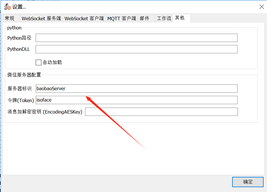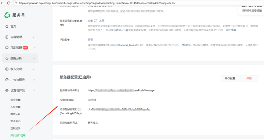 設定微信伺服器配置,注意下方的配置項要與微信公眾平臺中的伺服器配置一致。