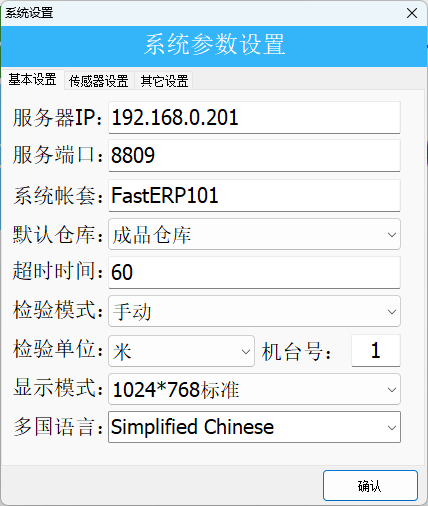 在基本設定中,選擇預設倉庫,將檢驗模式改為自動模式,設定機臺編號。