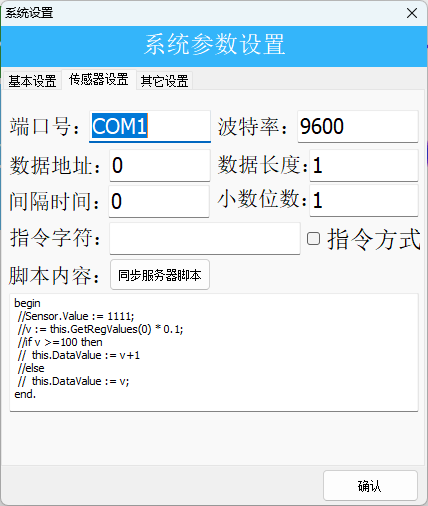 在感測器設定中,由於讀取的數據不包含小數位,故在公式中需將通過小數位相乘來將實際值修改爲計數器顯示的數值。